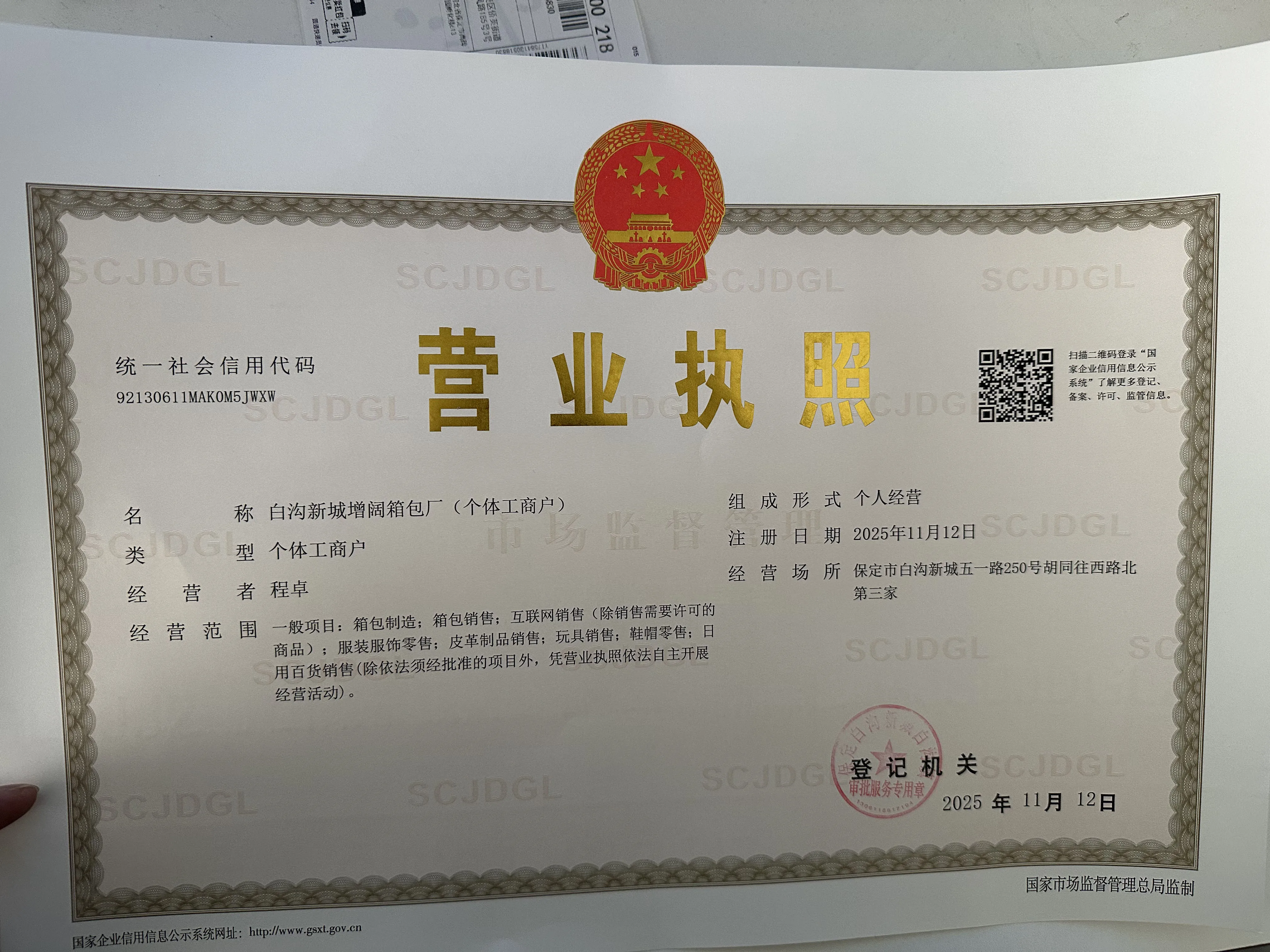 Business license: